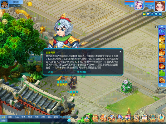 “奋起直追”任务设有一定的开启条件:服务器等级需大于80级,玩家角色等级需大于60级且低于服务器等级,可称得上是后进玩家的专属追赶福利。想要开启任务,只需前往长安城寻找NPC“巡游天兵”,他专门负责此项使命。