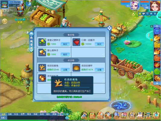 马车里的货物包括西域流行的面罩,这是一款脸饰外观道具;各种各样的稀有材料以及特殊作物种子——比如摇钱树的种子、星星之愿的种子等等。每次的货物都是随机的,没有定数。 【农副产品 随机收购】