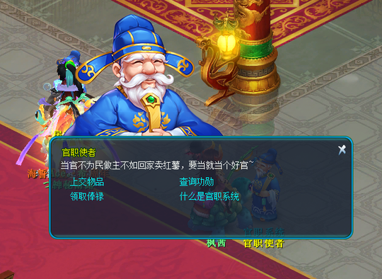 如果获得的装备不符合精炼要求,或者主力装备已经完成精炼,那么还有一条绝佳的“变现”途径——上交官府。前往长安城宫殿内,与“官职使者”对话,你便能找到上交物品的选项。