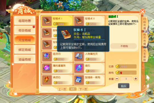 《逍遥情缘》想多养几只宠物和坐骑吗?那就扩展宠物坐骑栏位