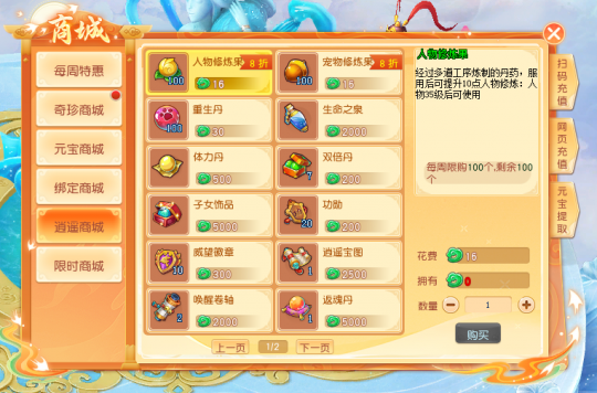 《逍遥情缘》周卡月卡两款权益卡 推荐度都是满分的!