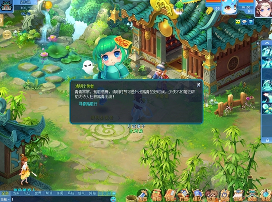 青团是清明时节,江南地区的传统小吃。日常玩法中掉落的艾叶、糯米、豆沙,可合成青团,右键即可获得丰富的奖励。活动期间,等级满30级的少侠可以每天到清明活动使者这儿领取一个寒食青团哟,品尝寒食青团可获得100点的双倍点数(不占用一周七次的双倍丹次数),赶快行动吧! 【寻春踏歌行 春风化雨落】 活动时间:4.3-4.16
